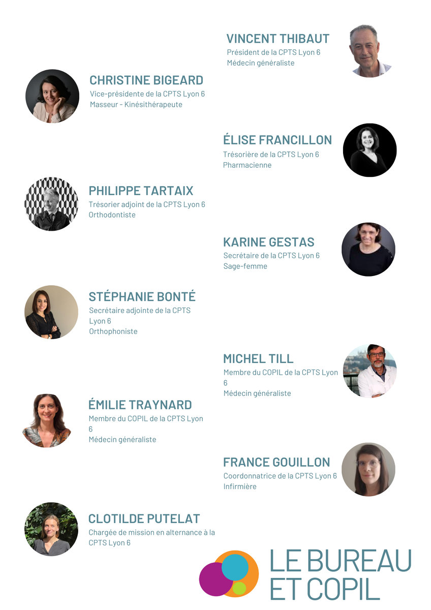En 2022, de nombreuses réunions se sont enchaînées dans les locaux de l’URPS médecins, rue Barrier pour permettre la création de l’association CPTS LYON 6. En septembre 2022, l’assemblée générale constitutive a eu lieu afin d’élire les représentants du Conseil d’Administration puis les membres du bureau. Une réflexion particulière sur une gouvernance équilibrée et paritaire a été menée afin que soit représenté l’ensemble des catégories de professions de santé dans la CPTS.